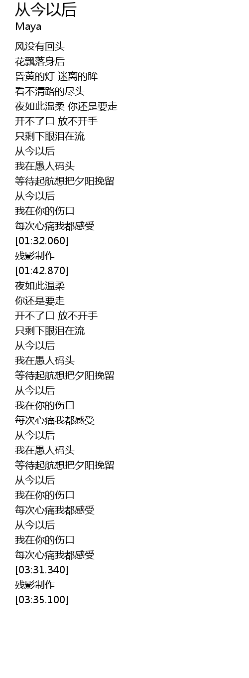 | [01:02.790] | 从今以后 |