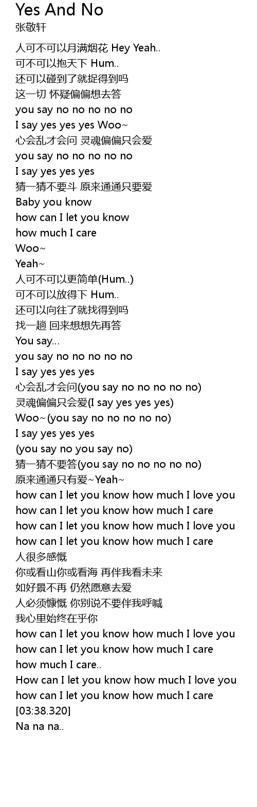 | [02:19.390] | 猜一猜不要答(you say no no no no no) |