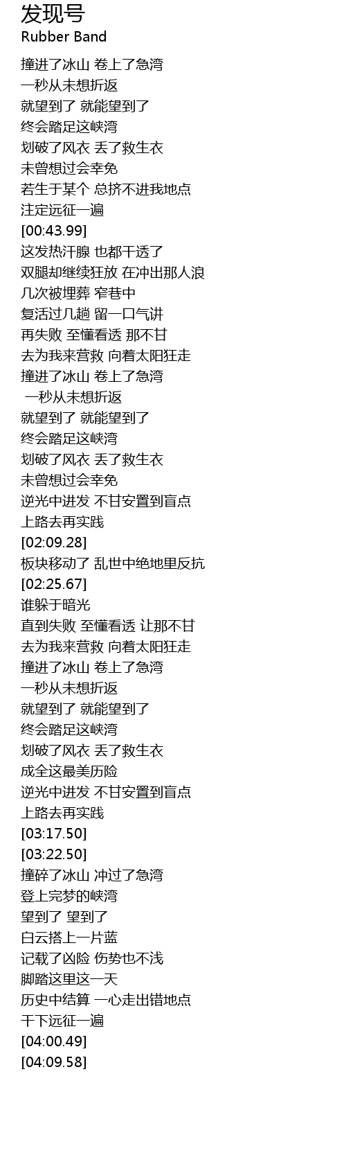 | [02:46.95] | 撞进了冰山 卷上了急湾 |