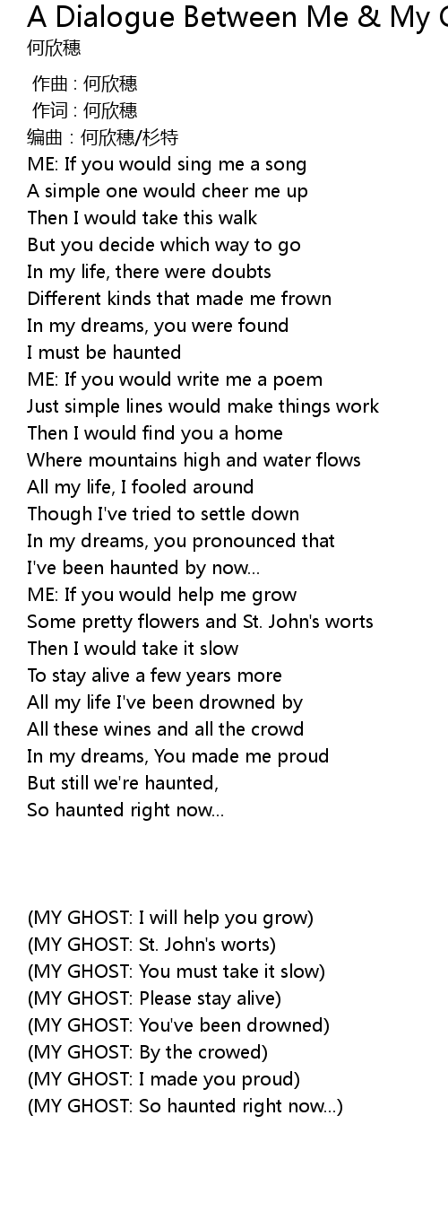 | [00:00.620] | ME: If you would sing me a song |