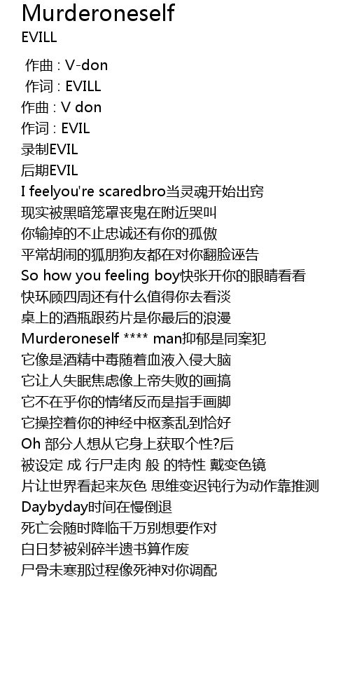 | [00:52.178] | Murderoneself **** man抑郁是同案犯 |