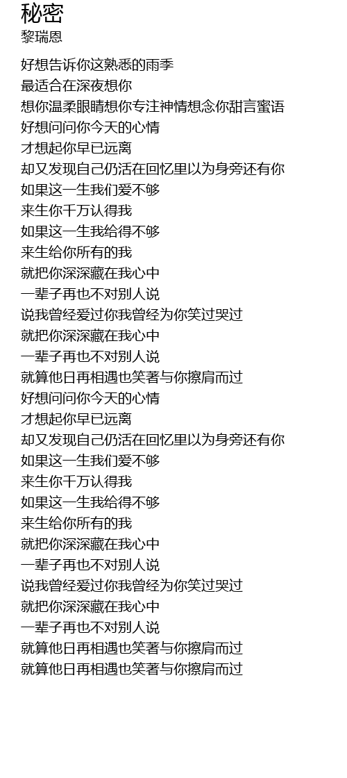 | 一辈子再也不对别人说 | |