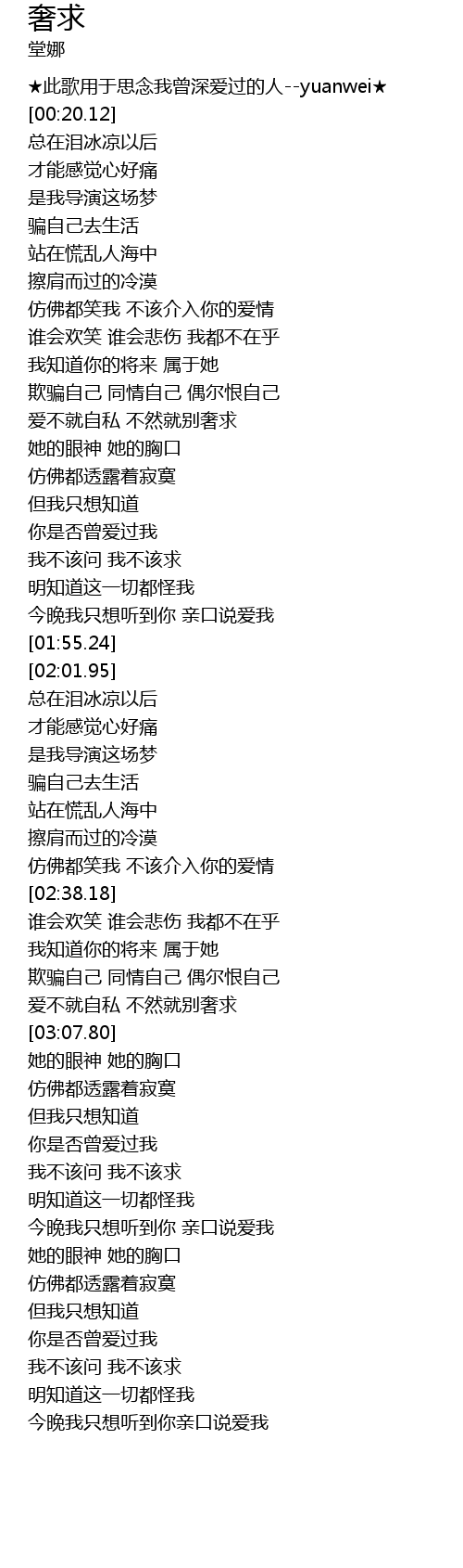 | [03:23.48] | 我不该问 我不该求 |