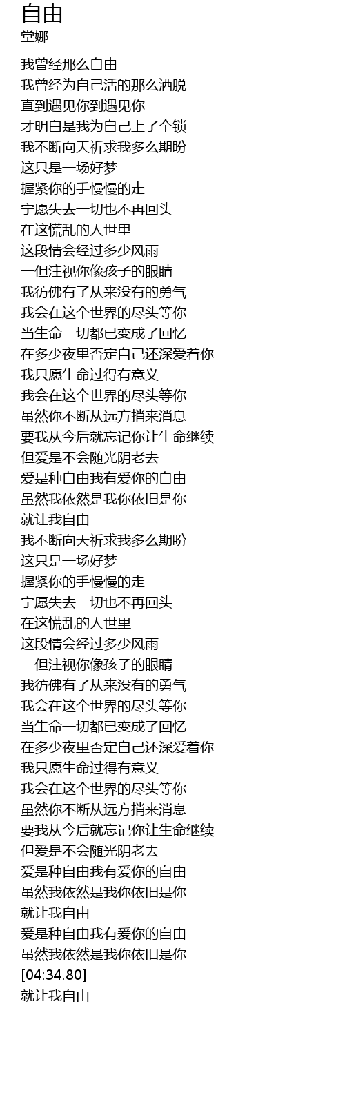 | [04:18.68] | 爱是种自由我有爱你的自由 |
