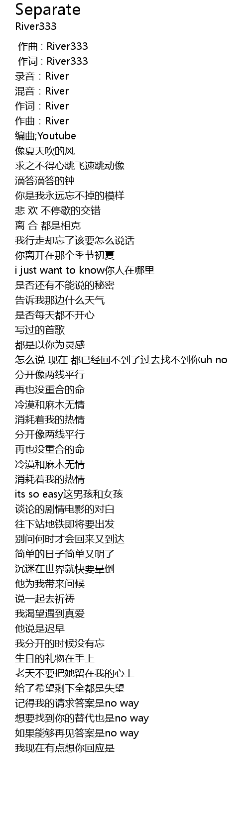 | [00:00.817] | 作词 : River333 |