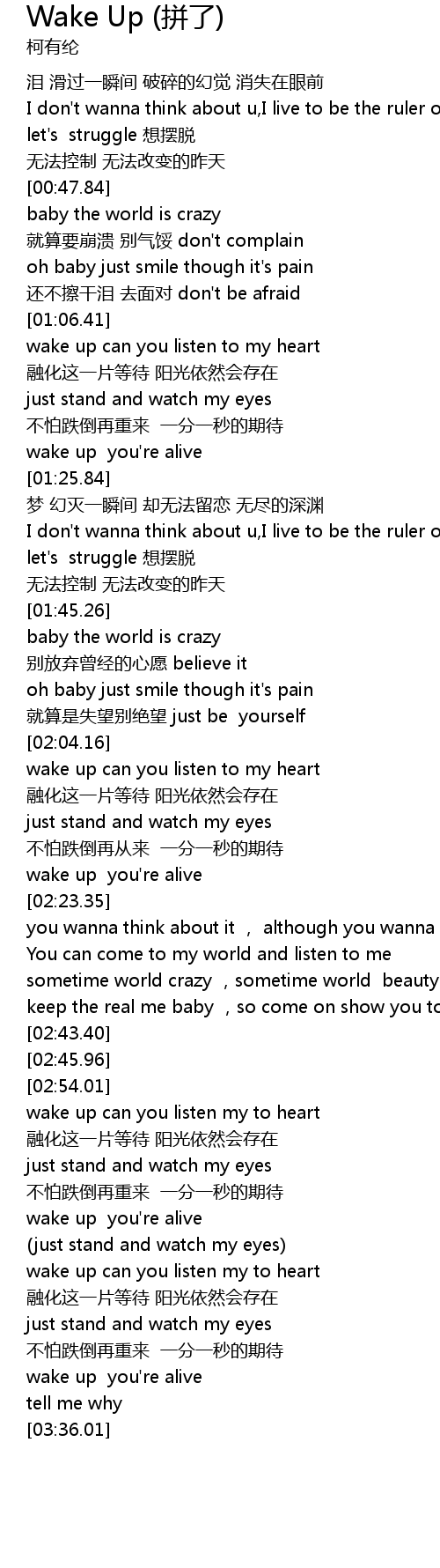| [03:10.68] | wake up you' re alive |