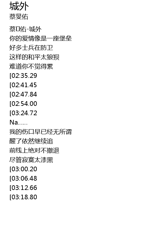 | [00:48.25][02:35.29] | 城外面我就快要崩溃 |