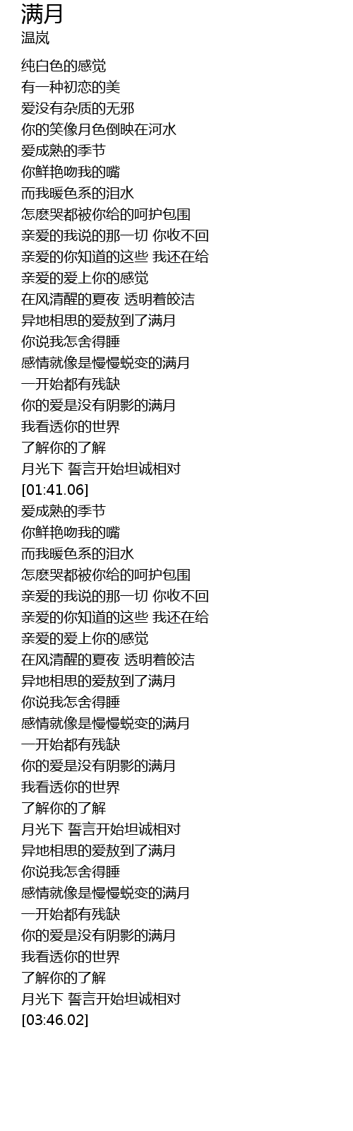 | [03:23.87] | 你的爱是没有阴影的满月 |