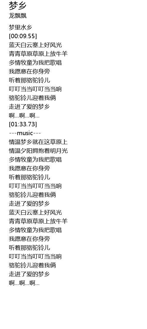 | [00:47.85] | 多情牧童为我把歌唱 |