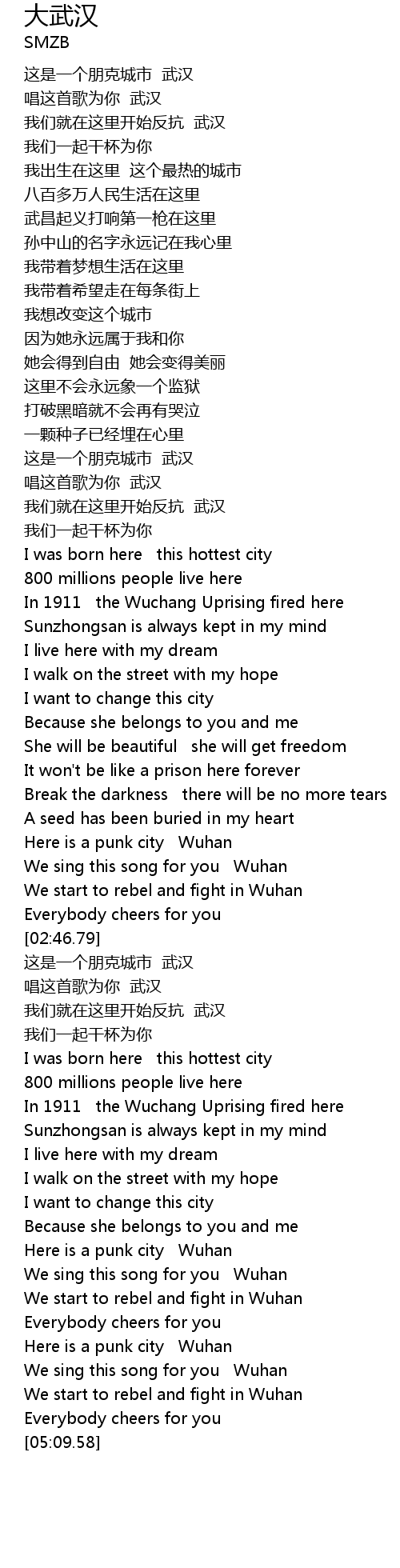 | [04:22.64] | We sing this song for you Wuhan |