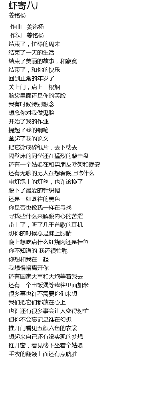 | [01:33.038] | 还有一个姑娘在和男朋友吵架和晚安 |