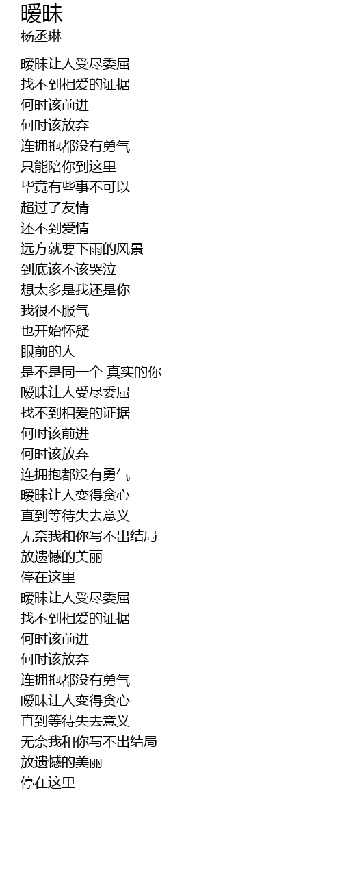 | [01:38.509] | 暧昧让人受尽委屈 |