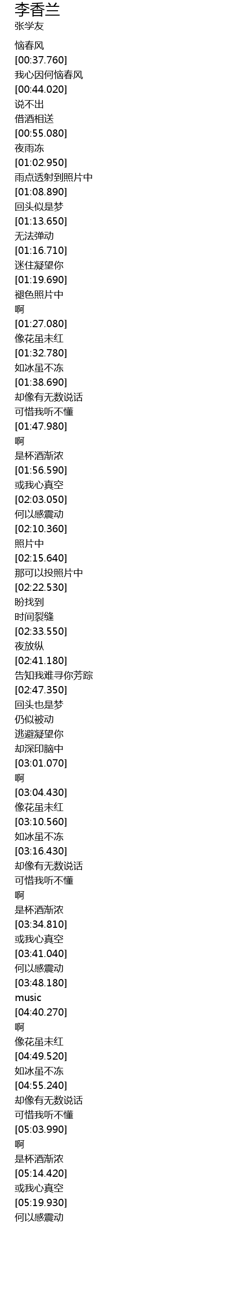 | [00:39.440] | wǒ xīn yīn hé nǎo chūn fēng |