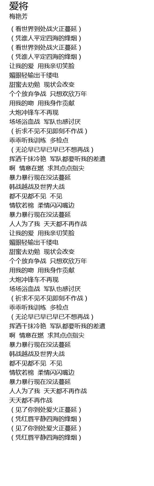 | [00:50.00] | chǎng chǎng yù xuè zhàn jūn duì yě gǎn tǎo yàn |