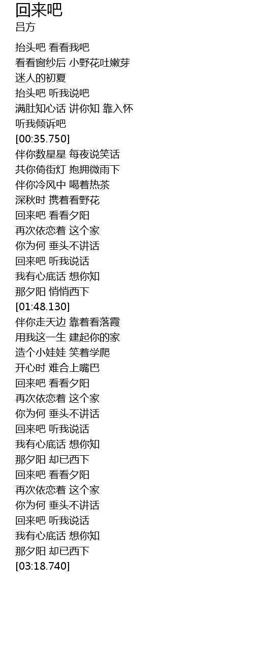 | [02:34.530] | 回来吧 听我说话 |