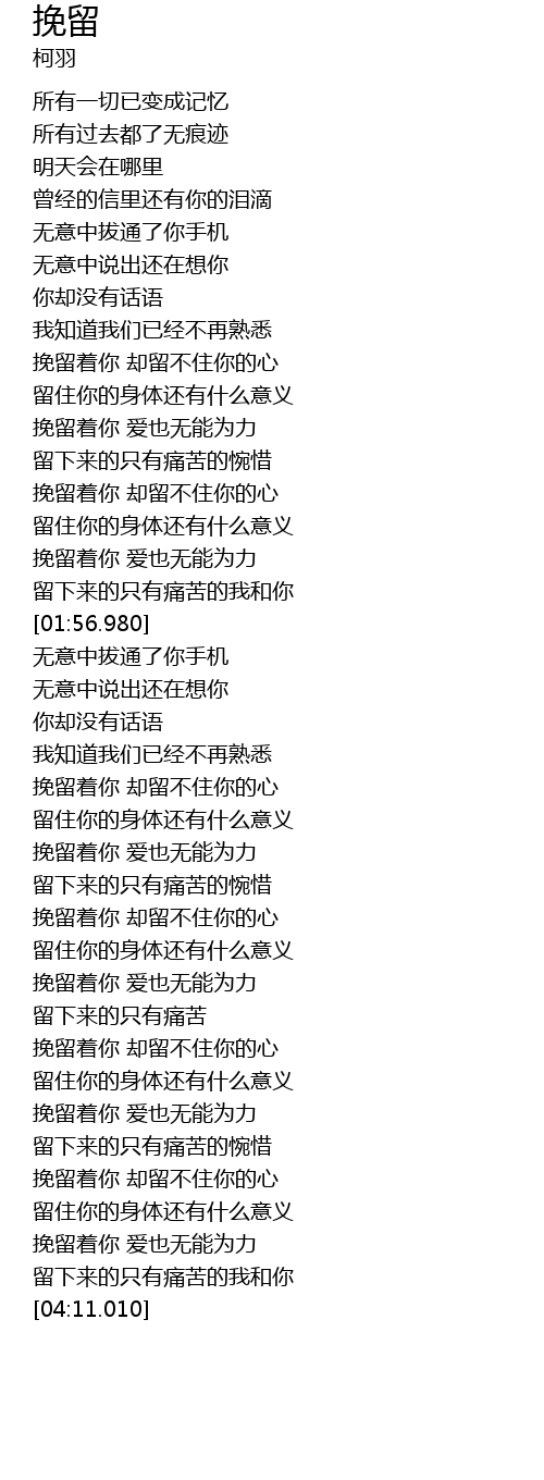 | [01:43.690] | 挽留着你 爱也无能为力 |
