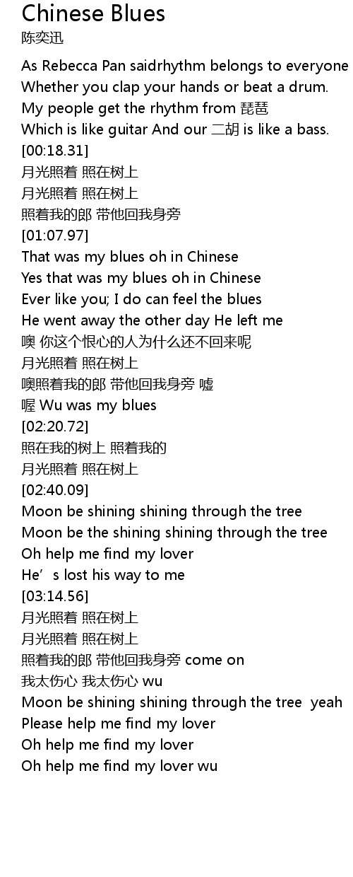| [01:20.15] | Yes that was my blues oh in Chinese |