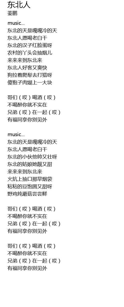 | Song | 东北人 |