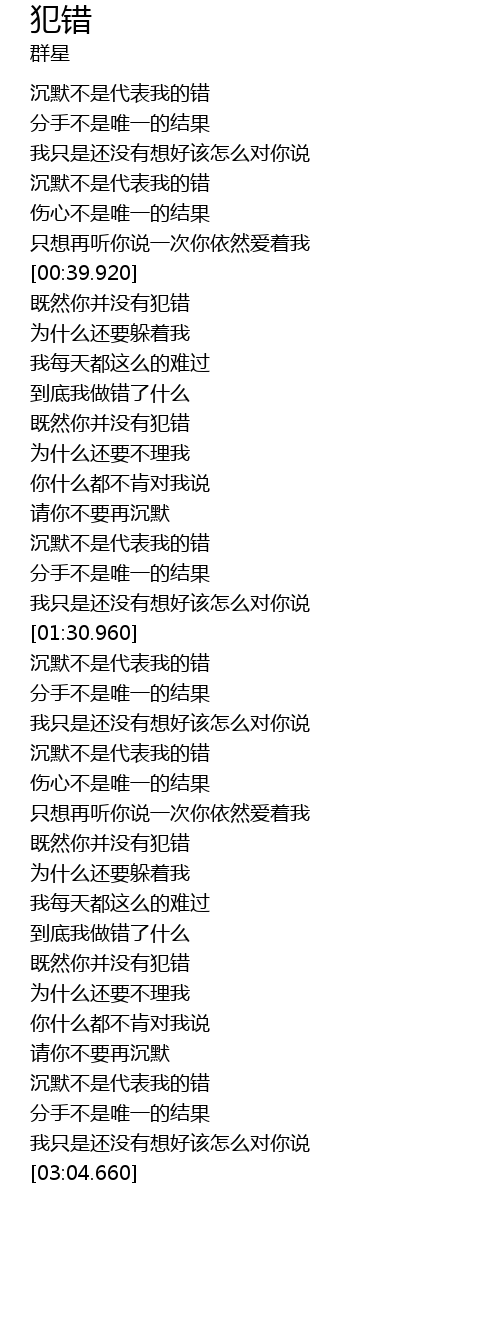 | [02:39.30] | 沉默不是代表我的错 |