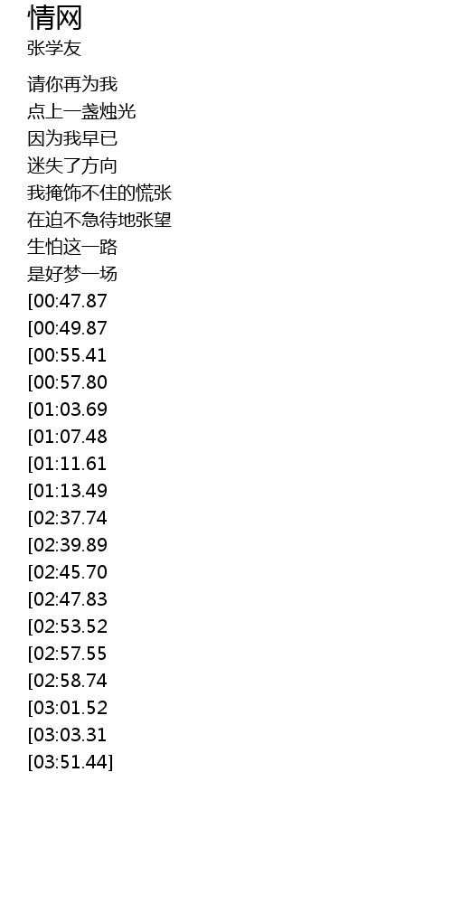 | [02:08.60][00:49.87] | 无边无际的网 |
