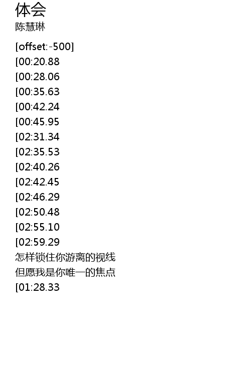 | [03:38.56][02:46.29][01:07.87] | 愿你体会 一一体会 |