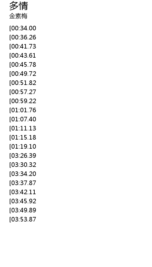 | [04:15.90][03:42.11][01:43.33] | 其实我这一颗多情的心 |