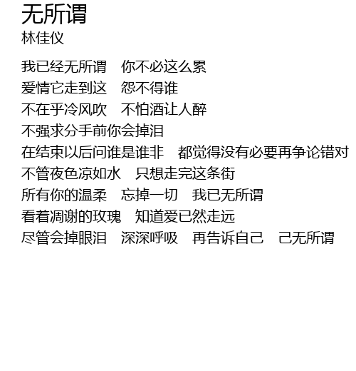 | 尽管会掉眼泪 深深呼吸 再告诉自己 己无所谓 |
