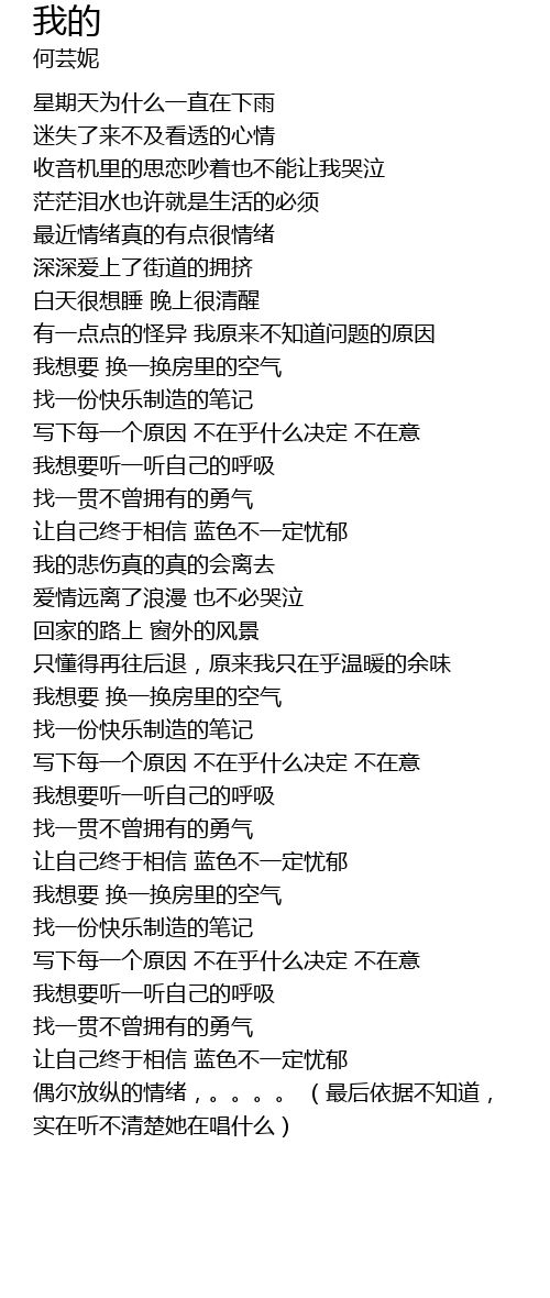 | [03:47.95] | 偶尔放纵的情绪,。。。。 (最后依据不知道, 实在听不清楚她在唱什么) |