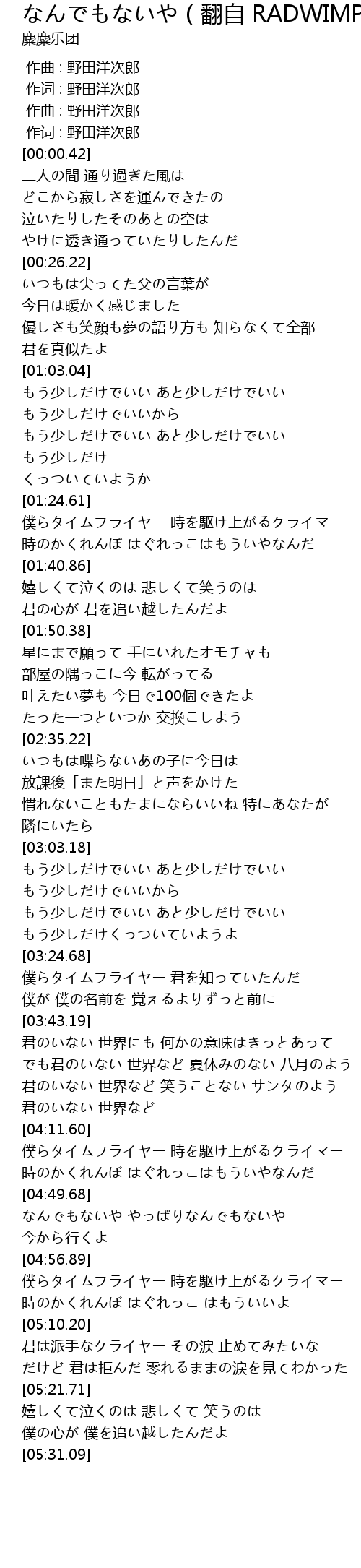 | [00:00.000] | 作曲 : 野田洋次郎 |