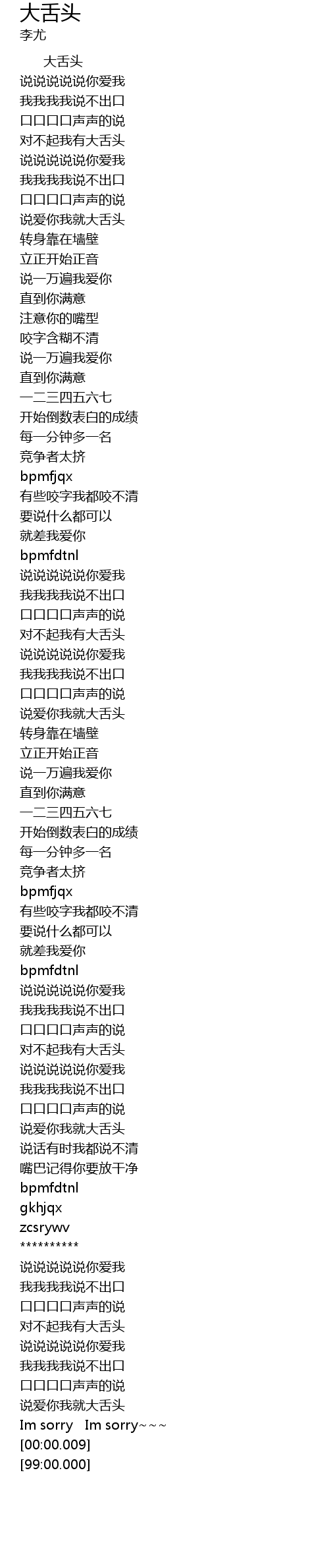 | [02:39.00] | duì bù qǐ wǒ yǒu dà shé tou |