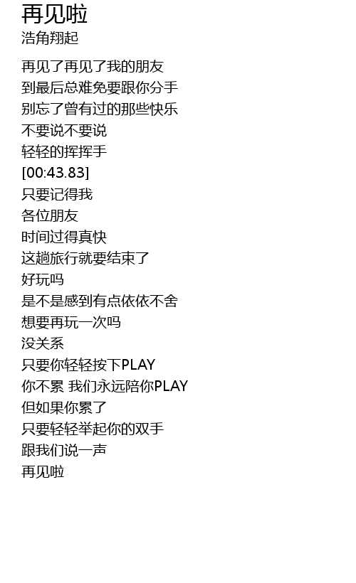 | [01:15.85] | 再见啦 |