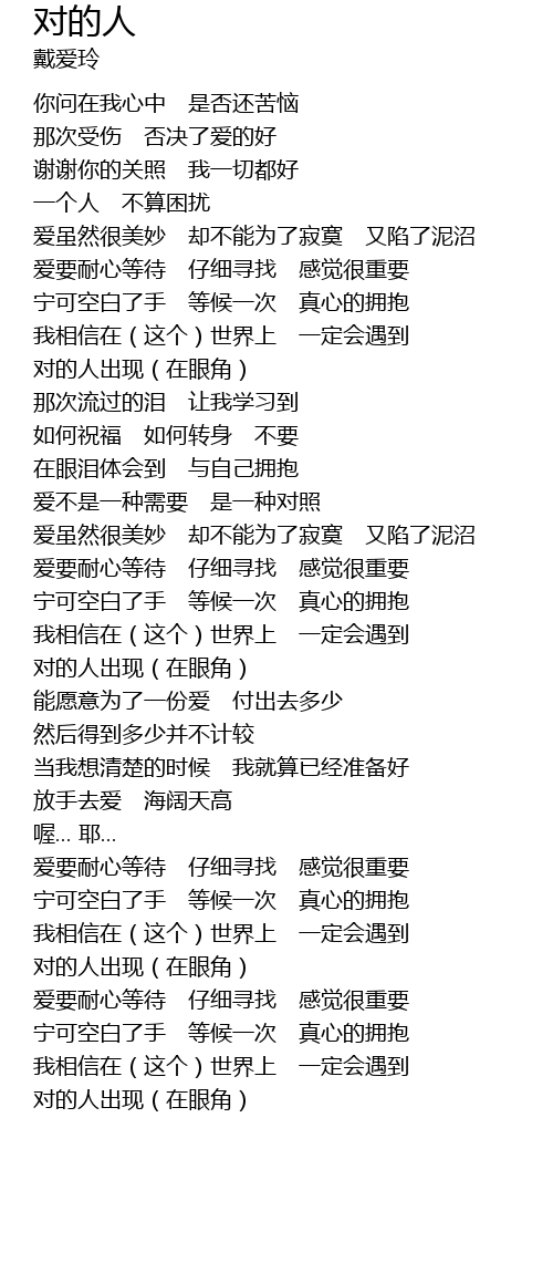 | [01:41.26] | 如何祝福 如何转身 不要 |