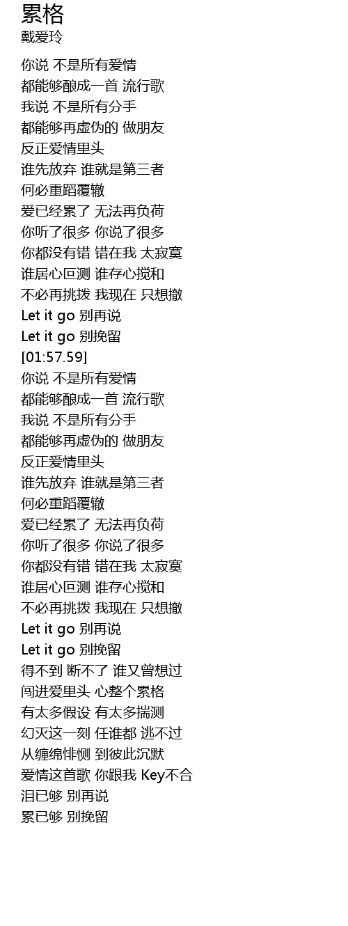 | [00:56.14] | 爱已经累了 无法再负荷 |