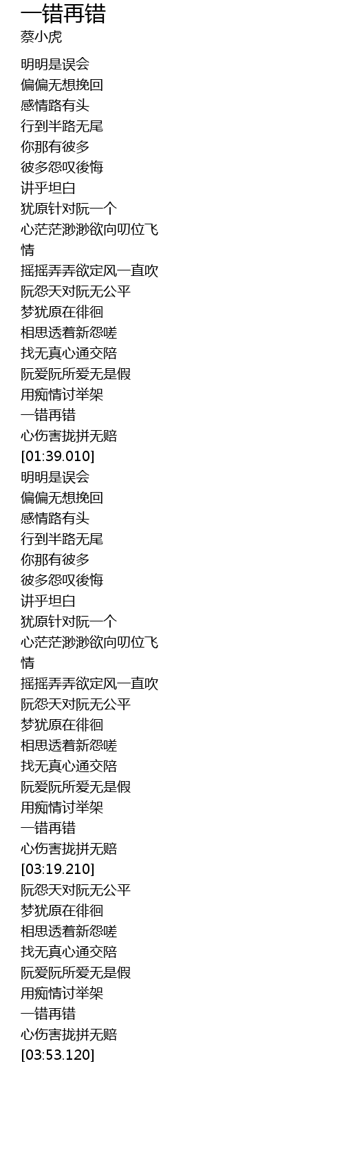 | [03:41.690] | yī cuò zài cuò |