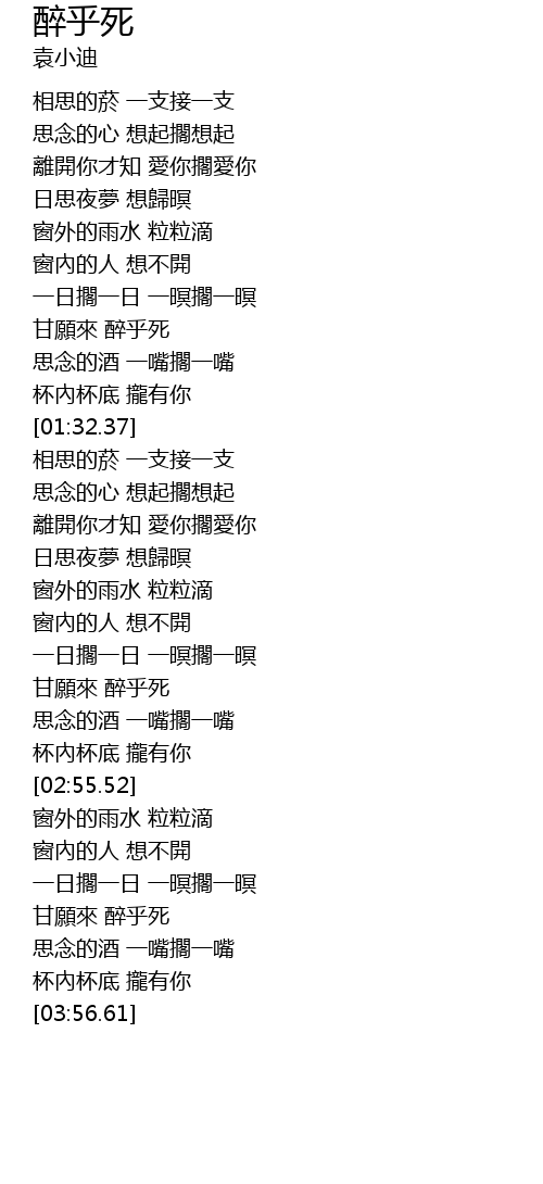 | [03:39.01] | gān yuàn lái zuì hū sǐ |