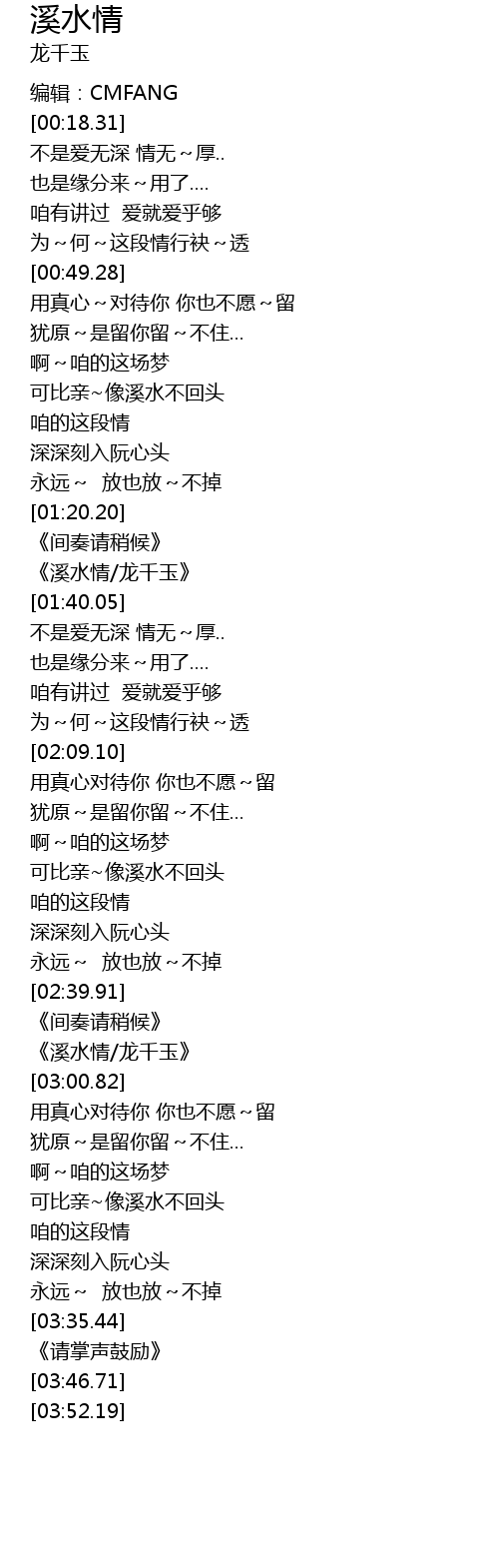| [01:33.90] | 《溪水情/龙千玉》 |
