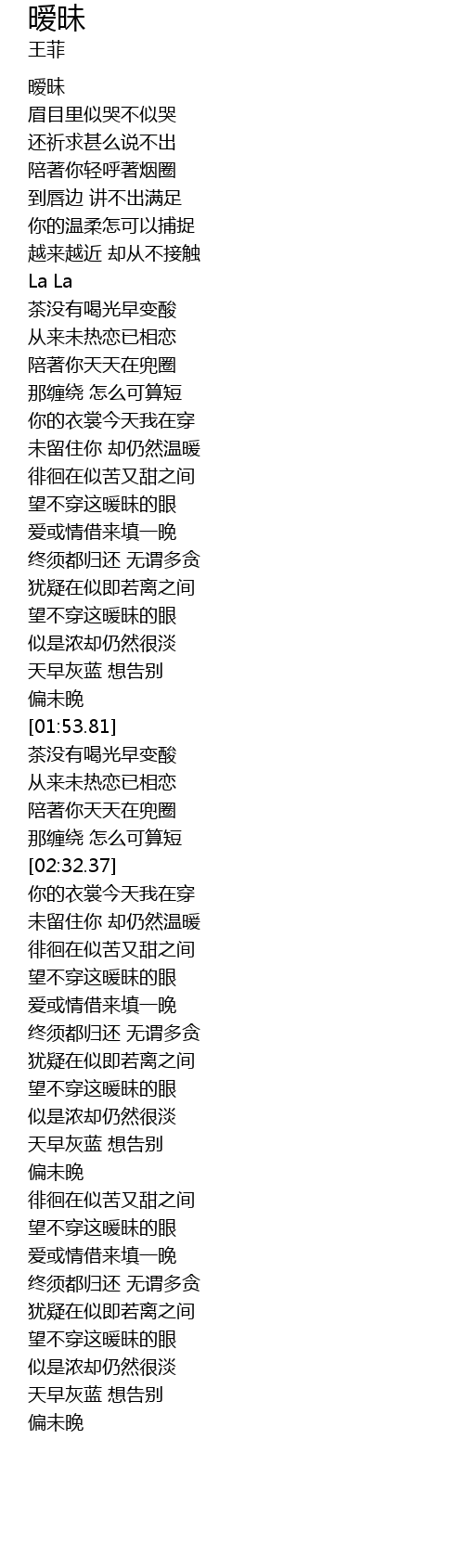 | [00:00.02] | 暧昧 |