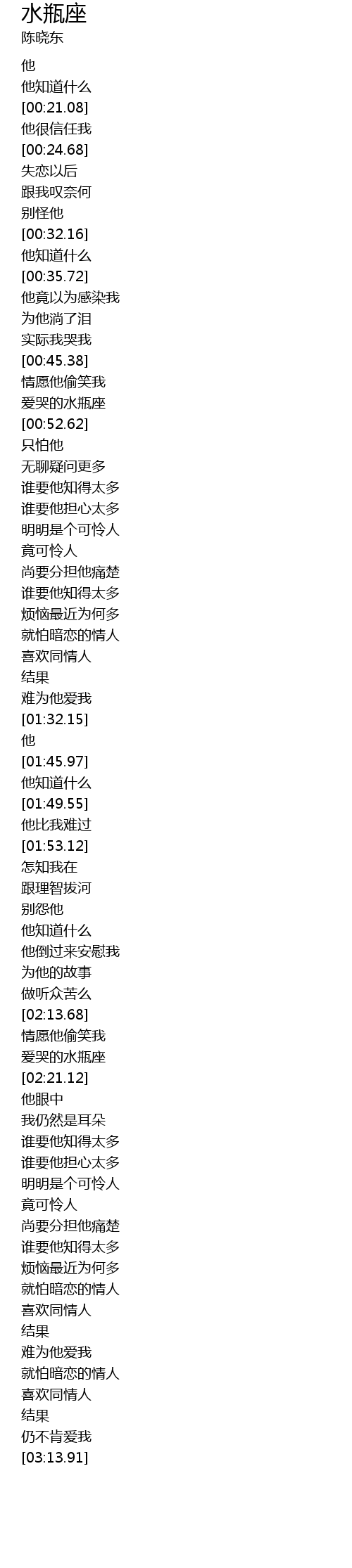 | [01:03.20] | shui yao ta dan xin tai duo |