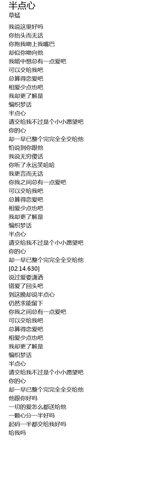 | [01:50.460] | 半点心 |