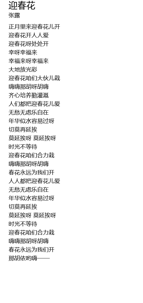 | [00:40.00] | 迎春花咱们大伙儿栽 |