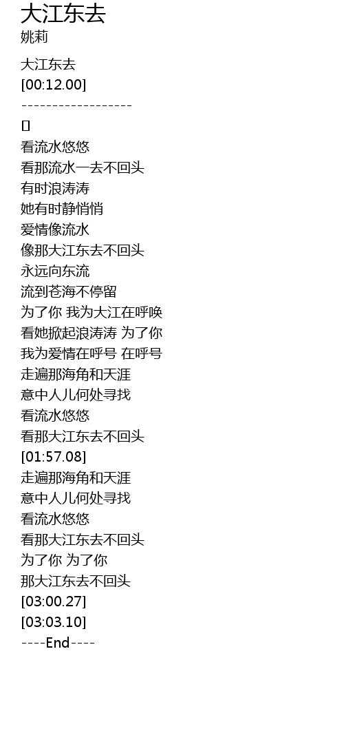 | [00:50.95] | xiàng nà dà jiāng dōng qù bù huí tóu |