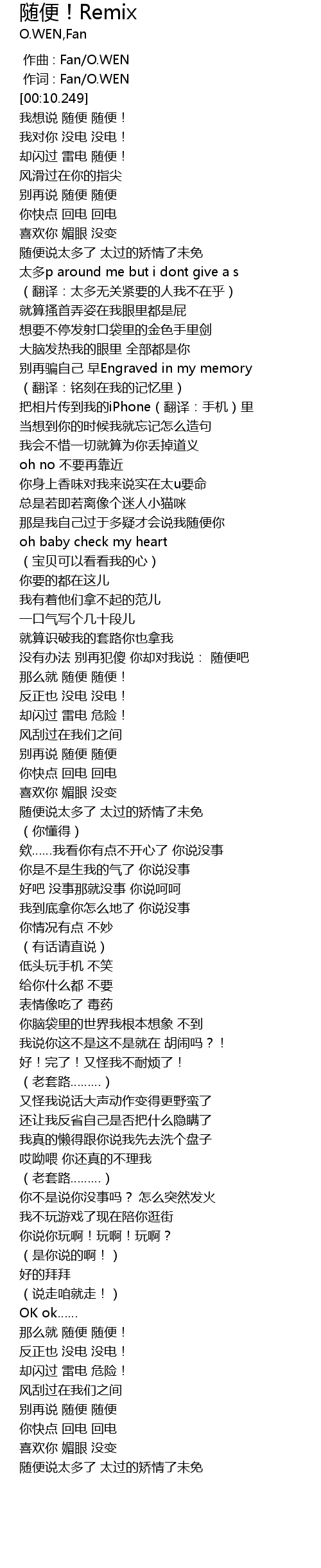 | [00:01.000] | 作词 : Fan/O.WEN |