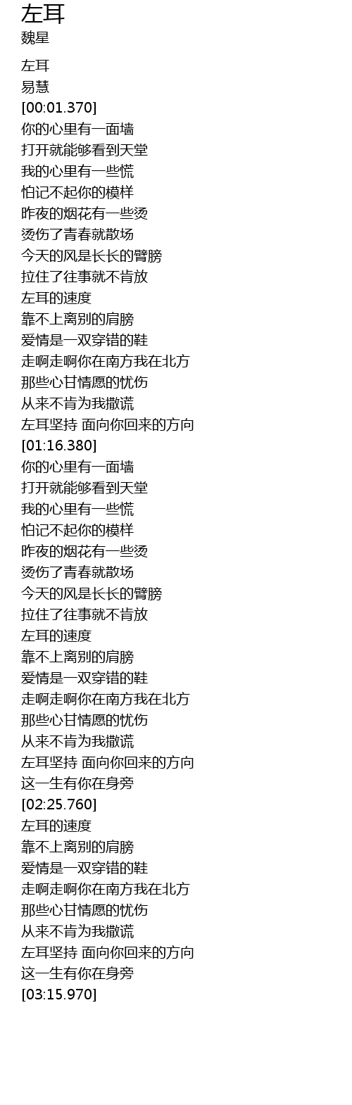 | [02:16.700] | 左耳坚持 面向你回来的方向 |