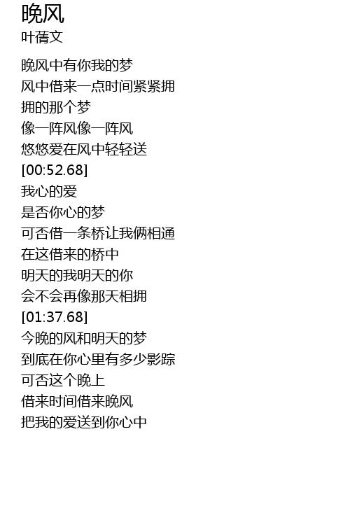 | [00:17.88] | wǎn fēng zhōng yǒu nǐ wǒ de mèng |