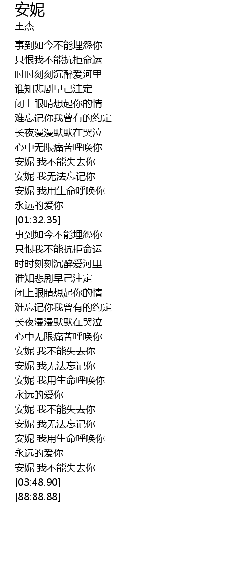 | [03:03.65] | 安妮 我用生命呼唤你 |