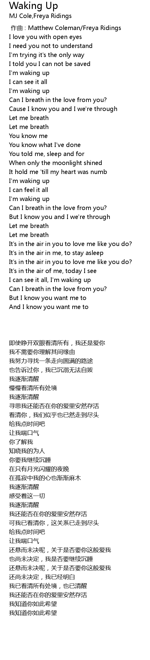 | [00:00.000] | zuò qǔ : Matthew Coleman Freya Ridings |