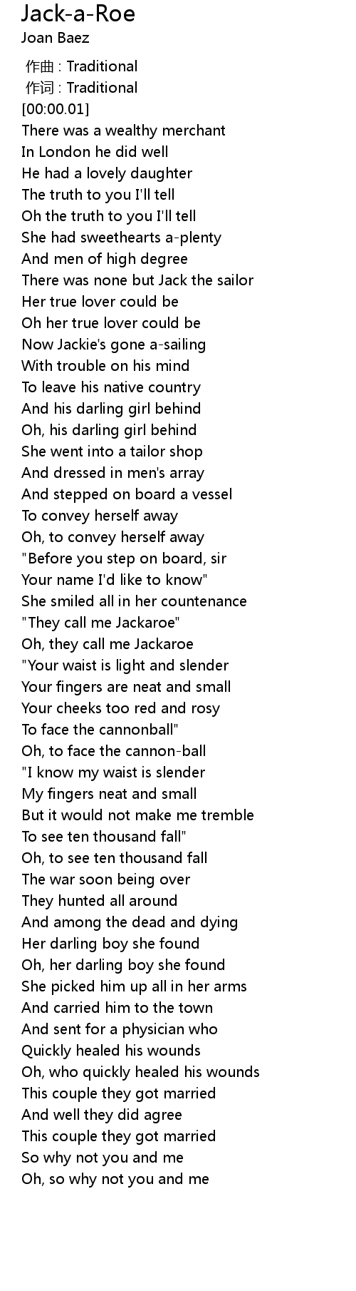 | [00:38.83] | Now Jackie's gone a-sailing |