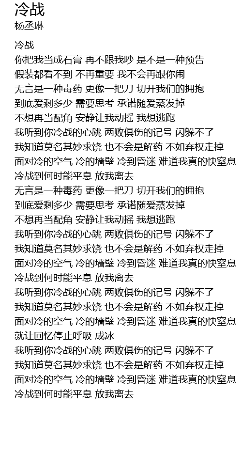 | [02:41.66] | 冷战到何时能平息 放我离去 |