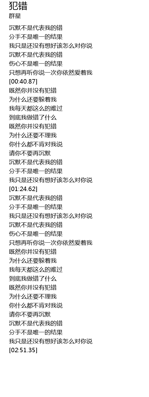 | [02:39.38] | chén mò bú shì dài biǎo wǒ de cuò |