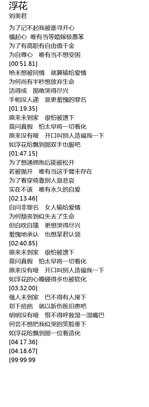 | [04:00.71] | 如浮花给飘到那一位看造化 |